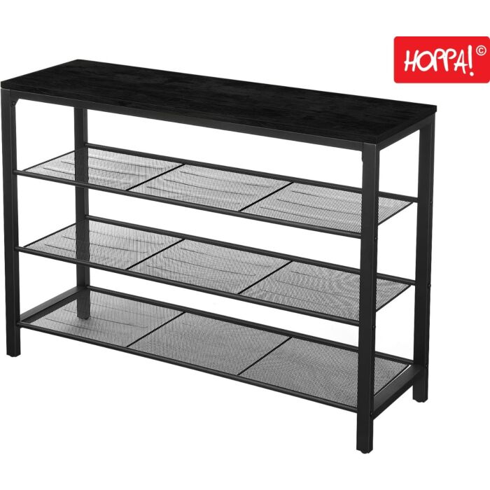 Hoppa! Songmics Vintage Metalen Schoenenrek - Zwart - Metaal - 90 x 31 x 73 cm (BxDxH)