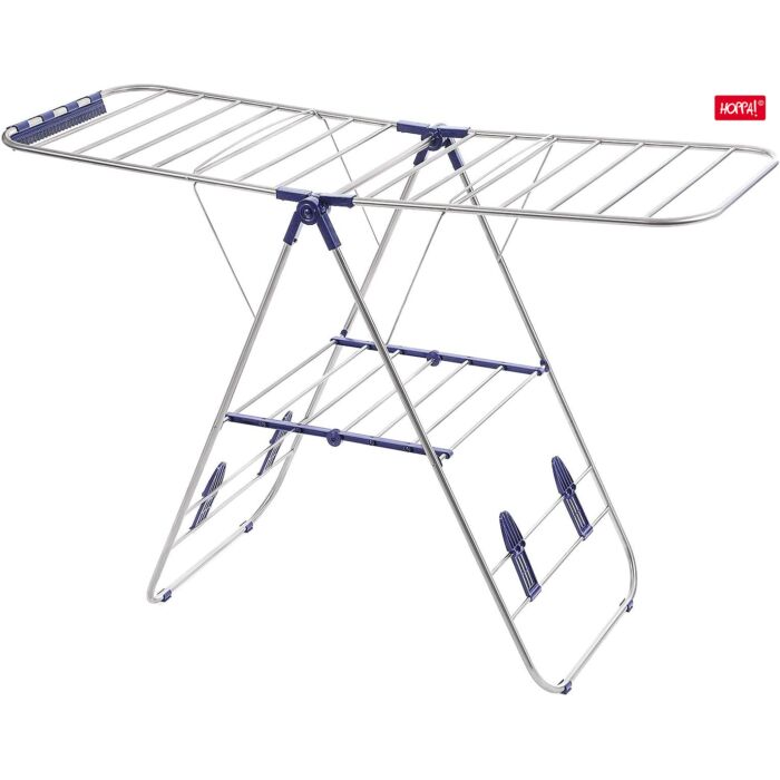 HOOGTE VERSTELBARE VLEUGELS (97-128 CM): Stel eenvoudig de twee grote droge bladeren op de gewenste hoogte in en u kunt zelfs uw broek, kleding of badhanddoeken drogen zonder de vloer aan te raken; ideaal voor rechtop werk, zonder rugpijn.