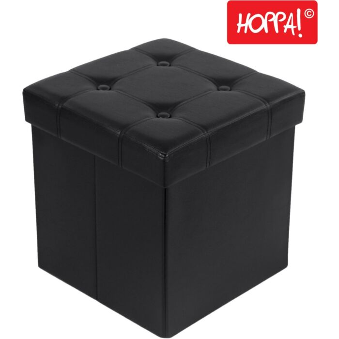 Hoppa! Songmics Zitbank met Opbergruimte - Zwart - Kunstleer/MDF - 38 x 38 x 38 cm