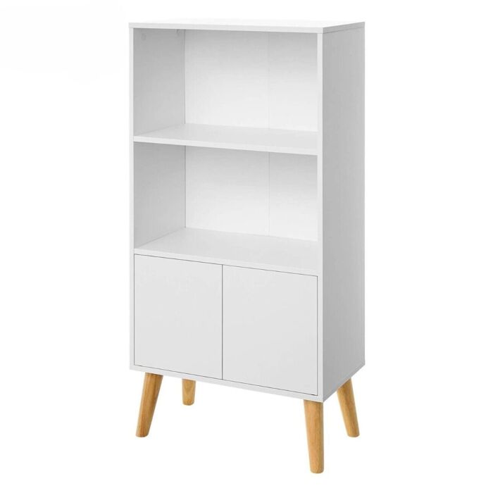 boekenkast, Boekenkast met 2 planken en kastdeuren, Woonkamerkast - Wit - Spaanplaat